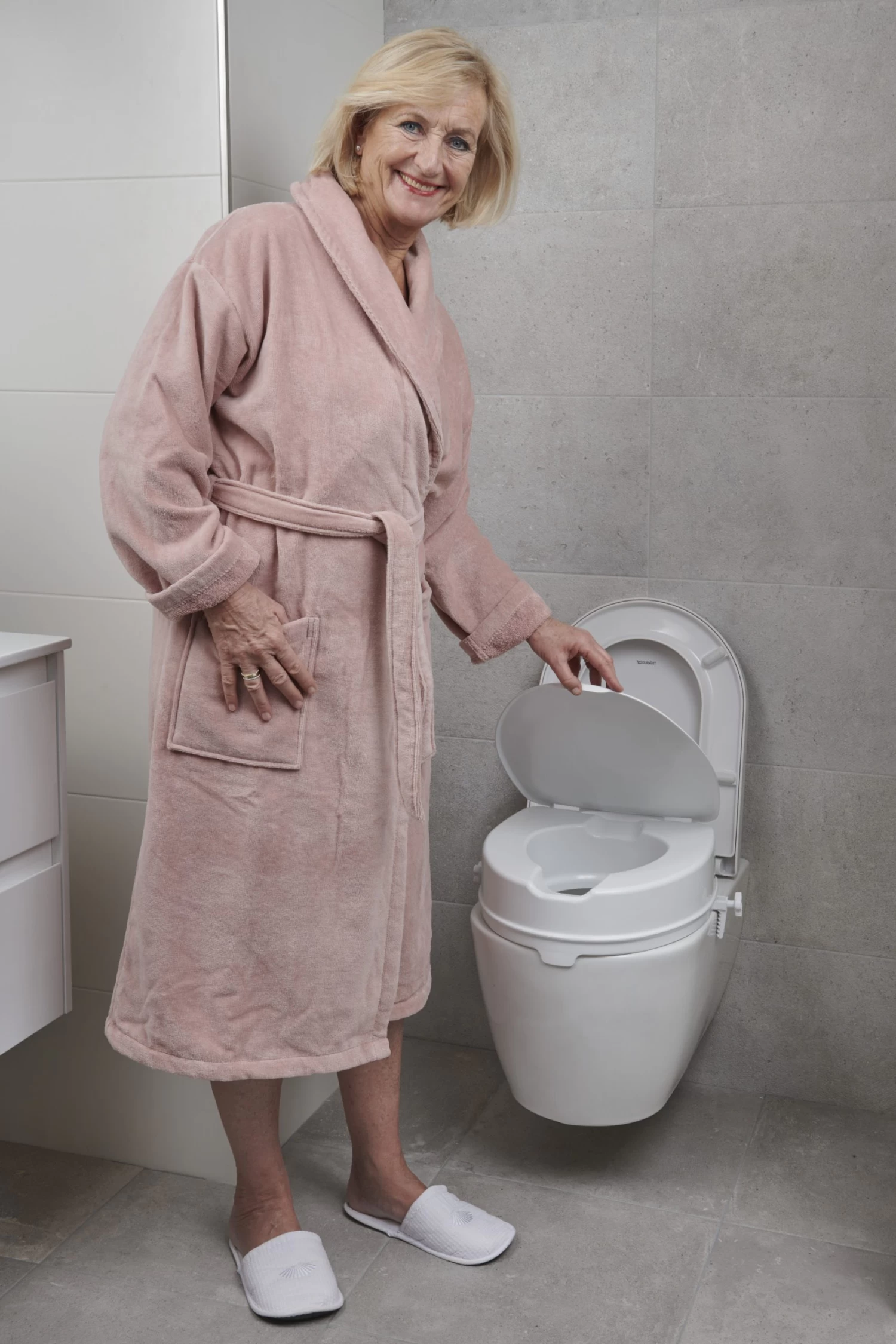 De Secucare toiletverhoger 10cm met klep maakt het makkelijker om op te staan of te gaan zitten op het toilet. De originele WC bril hoeft niet verwijderd te worden. De toiletverhoger wordt rechtstreeks op de bestaande wc-bril gemonteerd nadat deze uitraard eerst werd opengeklapt. De Secucare wc-verhoger past op alle standaard toiletten en is eenvoudig te installeren en opnieuw te verwijderen dankzij bijgevoegde klemschroeven. De toiletverhoger heeft een maximale belasting van 225 kg