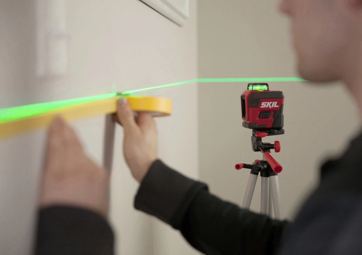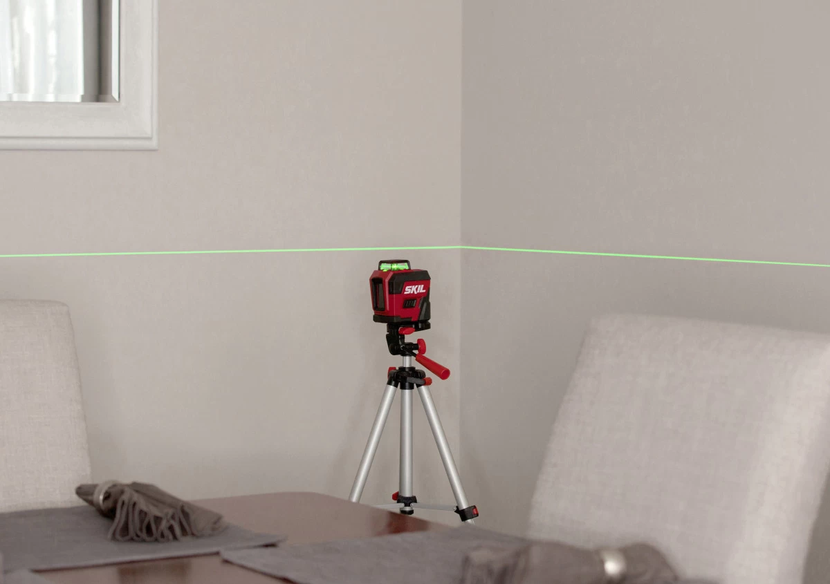 De SKIL 1961 is een veelzijdige 360° kruislijnlaser die bij uitstek geschikt is voor het maken van een laserprojectie in een kamer. Hij projecteert nauwkeurige horizontale, verticale of zelfs gekruiste laserlijnen. De groene lasertechnologie biedt maximaal zicht. Deze kruislijnlaser is voorzien van een geïntegreerde Lithium-Ion accu die eenvoudig kan worden opgeladen via de ingebouwde micro-USB-oplaadpoort. De laserlijnen worden automatisch genivelleerd in de zelfnivelleringsmodus. En indien je bezig bent met een doe-het-zelf-klus waarbij geen uitgelijnde projectie nodig is, kan je eenvoudig overschakelen naar de handmatige nivelleringsmodus. Hierdoor projecteer je diagonale lijnen, bijvoorbeeld als je leuningen installeert. Dankzij het grote werkbereik tot 30 meter, een compact ontwerp met softgrip en een eenvoudige gebruikersinterface biedt de SKIL 1961 een ideale oplossing voor jouw 360° nivelleringsklussen. Bovendien heeft deze 360° kruislijnlaser een montageopening met 1/4″-schroefdraad aan de onderkant voor eenvoudige bevestiging van een klem of een statief. Tot slot geeft de handige accuniveau-indicator aan hoeveel accuvermogen er nog over is. De SKIL 1961 DA wordt geleverd in een draagtas met een statief en USB-oplaadkabel.