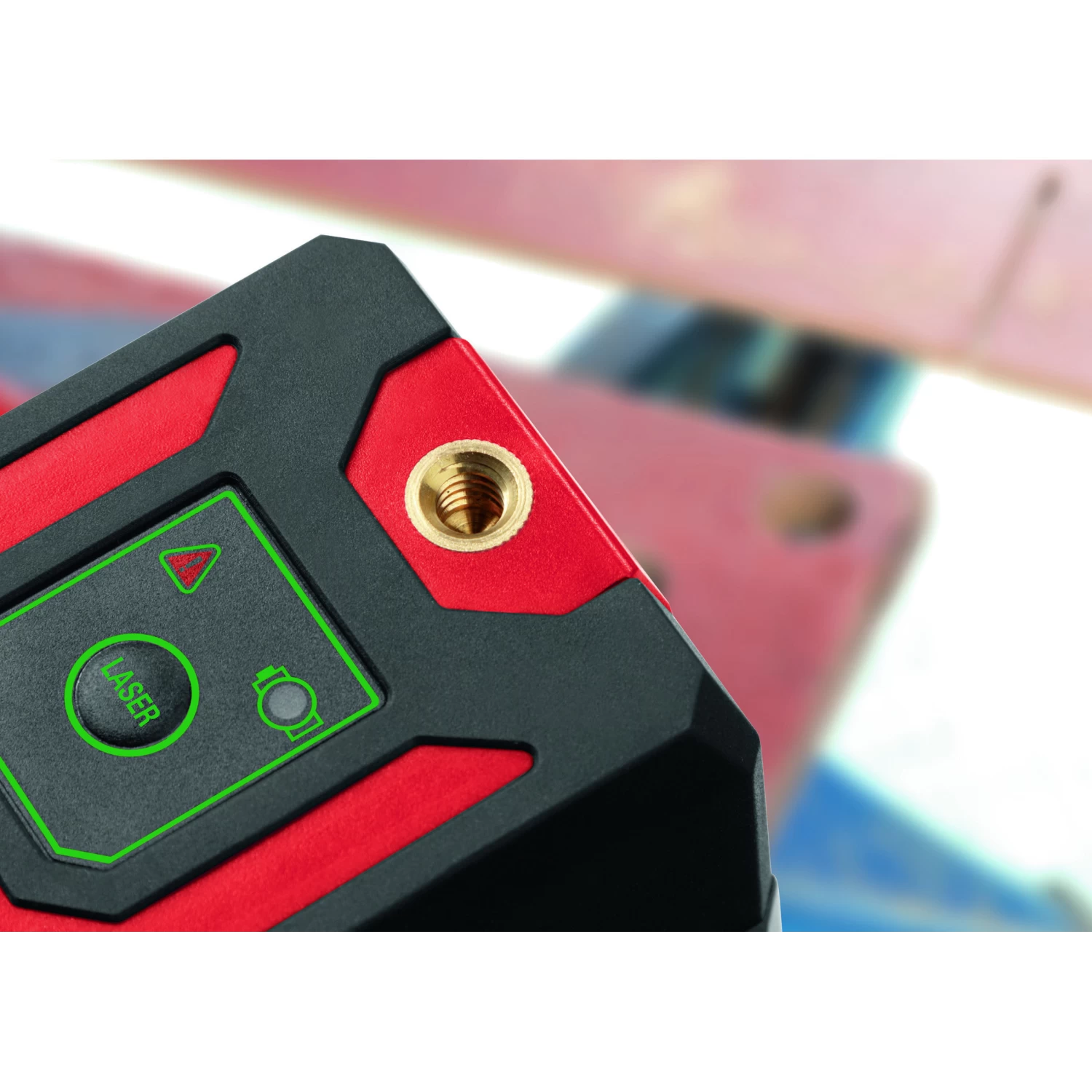 De SKIL 1912 is een kruislijnlaser die een nauwkeurige gekruiste horizontale en verticale laserlijn projecteert. Deze kruislijnlaser is voorzien van een geïntegreerde Lithium-Ion accu die eenvoudig kan worden opgeladen via de ingebouwde micro-USB-oplaadpoort. De groene lasertechnologie biedt maximaal zicht. De laserlijnen worden automatisch genivelleerd in de zelfnivelleringsmodus. En indien je bezig bent met een doe-het-zelf-klus waarbij geen uitgelijnde projectie nodig is, kan je eenvoudig overschakelen naar de handmatige nivelleringsmodus. Hierdoor projecteer je diagonale lijnen, bijvoorbeeld als je leuningen installeert. Je kunt de uitermate veelzijdige klem gebruiken om de laser op diverse oppervlakken te bevestigen. Dankzij het werkbereik tot 20 meter, een compact ontwerp met softgrip en een eenvoudige gebruikersinterface biedt de SKIL 1912 een ideale oplossing voor jouw nivelleringsklussen. Bovendien heeft deze kruislijnlaser een montageopening met 1/4″-schroefdraad aan de boven- en onderkant voor eenvoudige bevestiging van een klem of een statief. Tot slot geeft de handige accuniveau-indicator aan hoeveel accuvermogen er nog over is. De SKIL 1912 AA wordt geleverd met een flexibele klem en USB-oplaadkabel.