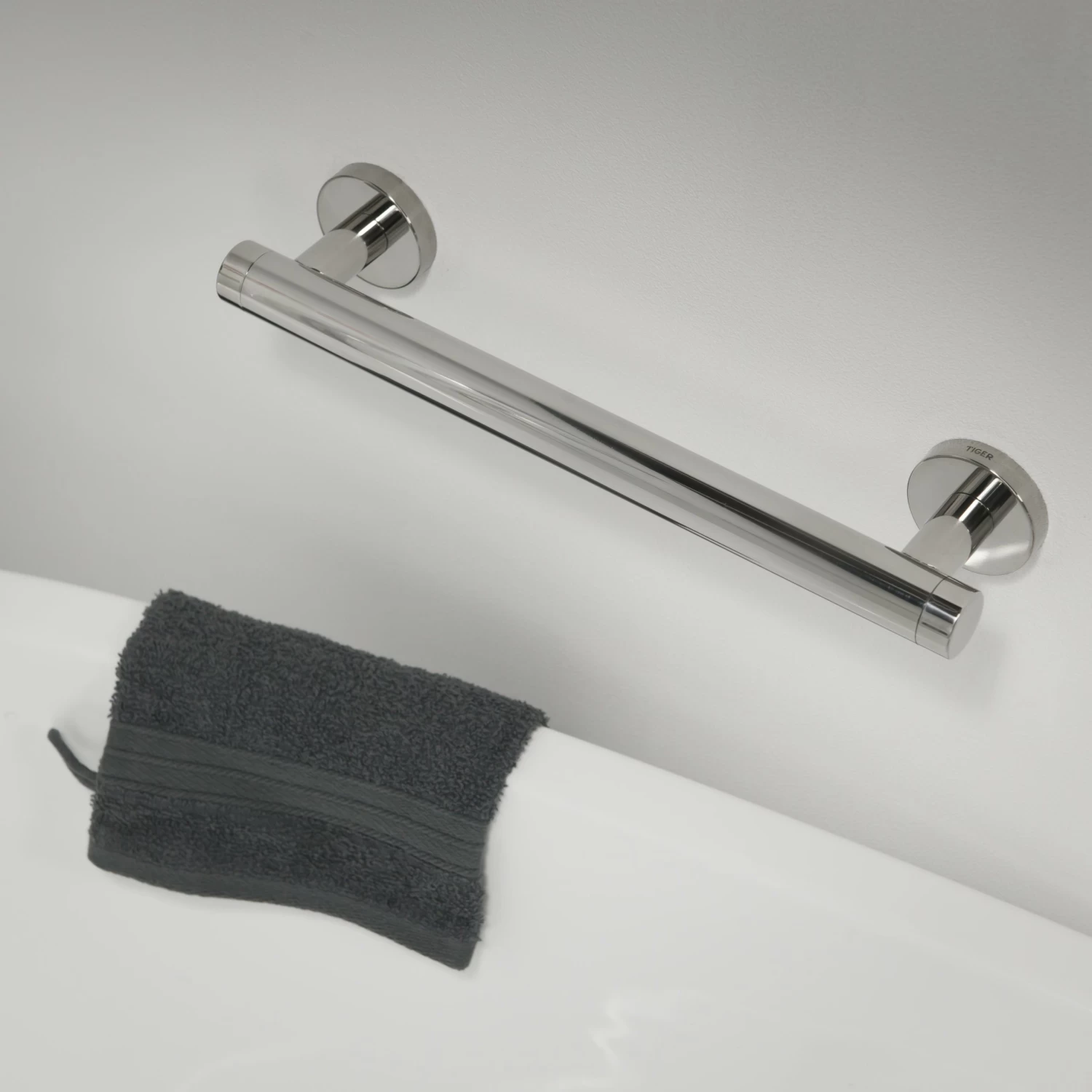 De Tiger Boston badgreep rvs glans 30 cm van de accessoire serie Boston is uitgevoerd in glanzend RVS, en is ook verkrijgbaar in geborsteld RVS. De badgreep heeft een lengte van 30 centimeter. De Tiger accessoires zorgen voor een stijlvolle toevoeging aan je badkamer. Dit product kan uitsluitend worden bevestigd met de meegeleverde schroeven. Er zijn van deze serie diverse sanitair accessoires verkrijgbaar. Dit product maakt deel uit van het Boston totaalconcept, dat verder bestaat uit kranen, badmeubelen, douche accessoires en douchecabines, alles in de Boston stijl.