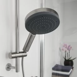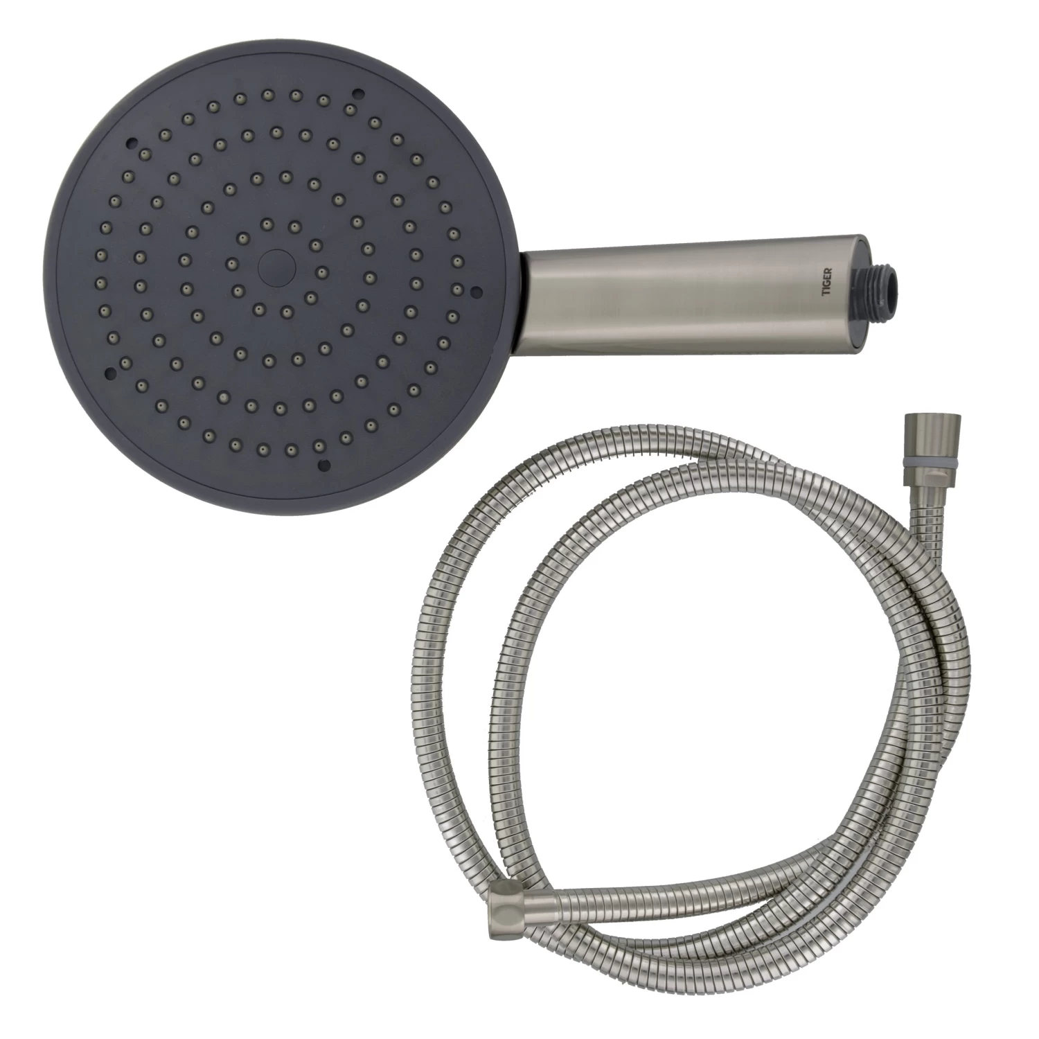 De Tiger Boston regendouche met slang rvs Ø20 cm – 1 stand ten behoeve van de los verkrijgbare Boston Comfort & Safety douche glijstang , is voorzien van een antikalk functie en is uitgevoerd in geborstelde RVS look. De doucheslang heeft een lengte van 1,5 meter en is uit te rekken tot 2 meter. Zodra deze los gelaten wordt, is de slang weer 1,5 meter. Ook verkrijgbaar in glanzende RVS look. Er zijn van deze serie diverse sanitair accessoires verkrijgbaar, voor meer comfort en veiligheid in de badkamer en toilet, geheel in de bekende Boston stijl.