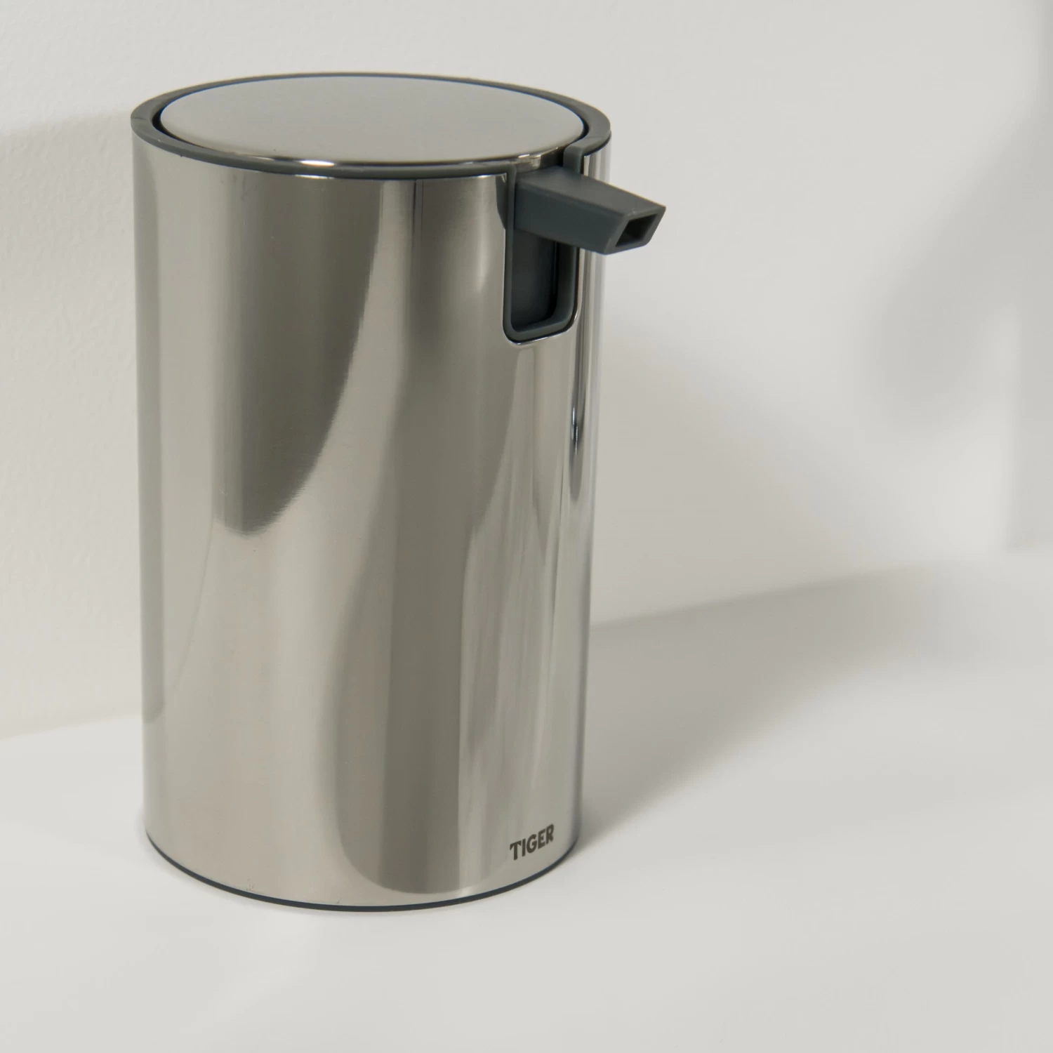 De Tiger Boston zeepdispenser staand chroom van de accessoireserie Boston is uitgevoerd in glanzend RVS, en is ook verkrijgbaar in geborsteld RVS. De zeepdispenser bevat een uitneembare kunststof binnenfles, dit vereenvoudigt het vullen en het schoonmaken. De Tiger accessoires zorgen voor een stijlvolle toevoeging aan je badkamer. Er zijn van deze serie diverse sanitair accessoires verkrijgbaar, waaronder verschillende maten Boston zeepdispensers, inclusief de kleinere versie voor het toilet. Dit product maakt deel uit van het Boston totaalconcept, dat verder bestaat uit kranen, badmeubelen, douche accessoires en douchecabines, alles in de Boston stijl.