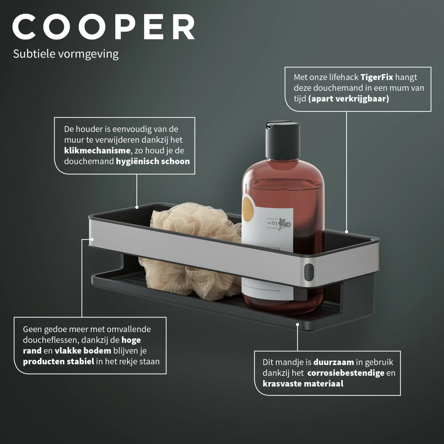 Cooper is eenvoudig te bevestigen met TigerFix, onze lifehack voor iedereen die niet wil boren.