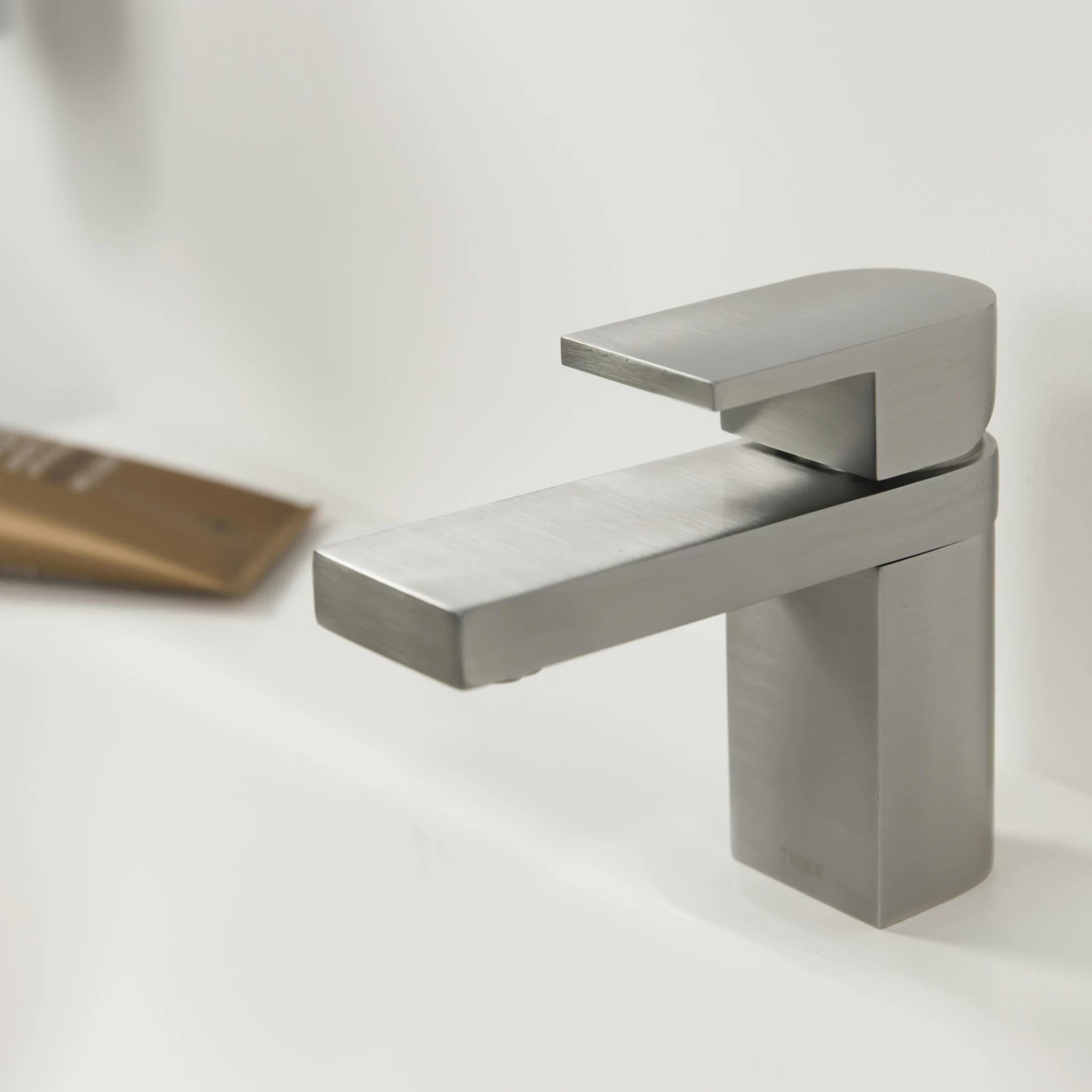 De Tiger Items wastafelkraan éénhendel met lage uitloop rvs is een rechthoekige wastafelkraan met een PVD-coating. Dit zorgt ervoor dat de wastafelkraan jarenlang haar stralende uitstraling behoudt. De wastafelkraan beschikt over een top fixing montagesysteem. De Items kranen maken deel uit van een compleet badkamerconcept dat wastafels, badkamermeubilair, douchecabines, spiegels, kranen en vele accessoires omvat.
