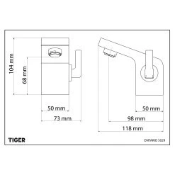 De Tiger Ontario fonteinkraan chroom is toepasbaar op verschillende wastafels. De kraan beschikt over een waterbesparende en anti-kalk perlator. De fonteinkraan is door een unieke topfixing montagesysteem van bovenaf te monteren. Dit product is onderdeel van het Ontario totaalconcept, dat verder bestaat uit badmeubelen, douche-en badkamer accessoires en douchecabines, alles in de Ontario stijl.