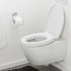 Bij het design voor deze Comfort Care wc-bril van Tiger is gedacht aan alle gemakken voor de perfecte ergonomie in huis. Zo is deze zitting 5 cm hoger dan een doorsnee wc-bril, wat het gaan zitten nog makkelijker maakt voor bijvoorbeeld lange mensen of als knielen lastig gaat. De deksel is voorzien van een donkere antislip handgreep waardoor deze goed te zien en makkelijk te openen is. Extra stabilisatie nokken aan de onderzijde van de zitting zorgen ervoor dat de zitting niet kan gaan glijden of wiebelen. Tot slot sluit de zitting geruisloos en veilig met het softclose systeem. Voordat je jouw wc-bril gaat vervangen, is het raadzaam om ook even de lijntekening van dit artikel te bekijken. Hierop staan alle benodigde formaten en als deze overeenkomen met jouw toiletpot ben je verzekerd van een stevige en passende bevestiging.
