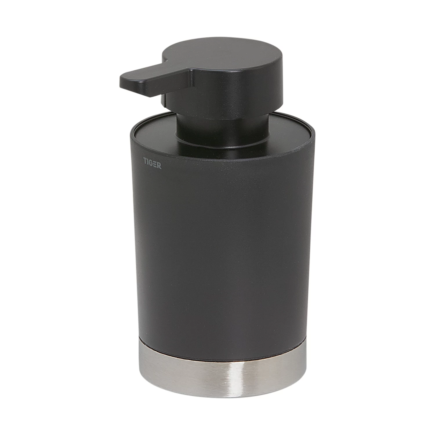 De vrijstaande zeepdispenser uit de Tune serie van Tiger is uitgevoerd in de kleuren geborsteld RVS en mat zwart. De zeepdispenser is geschikt voor gebruik in verschillende ruimtes in het huis zoals de badkamer, het toilet of de keuken. Het zeeppompje is eenvoudig in gebruik en heeft een uitneembaar kunststof zeepreservoir zodat je deze makkelijk kunt schoonmaken en bijvullen. Ook is de bodem voorzien van kunststof voetjes zodat het de ondergrond tegen krassen beschermt. De Tune serie bevat een groot aantal aanvullende accessoires voor de badkamer en het toilet.