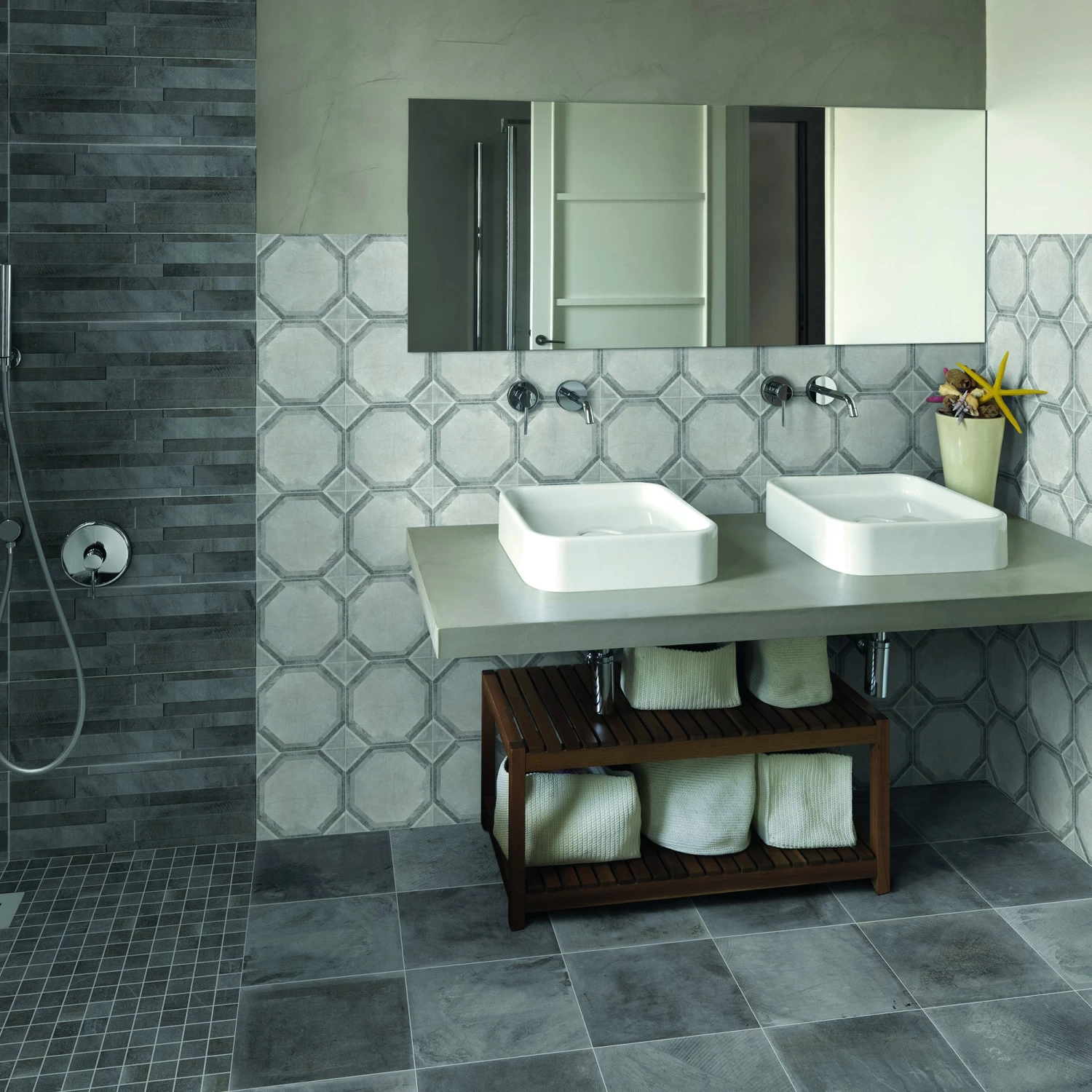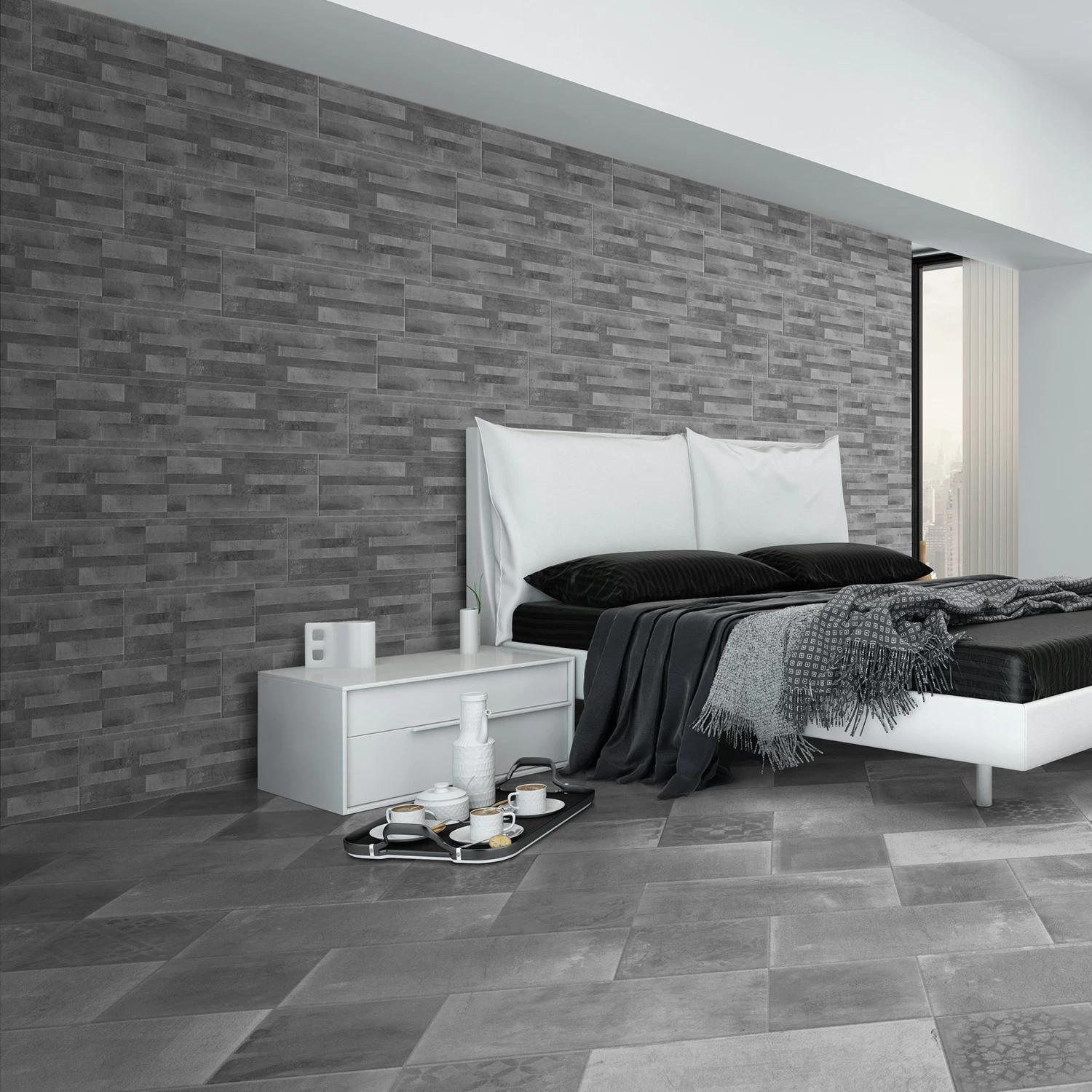 Deze wandtegel heeft een stoere betonlook met reliëf in het oppervlakte. De tegel geeft iedere wand een moderne uitstraling. De tegel wordt per 10 stuks verpakt en is uitsluitend toepasbaar voor binnengebruik en wanden. De tegels zijn wel vochtbestendig dus kunnen prima in een badkamer of toiletruimte worden geplaatst.