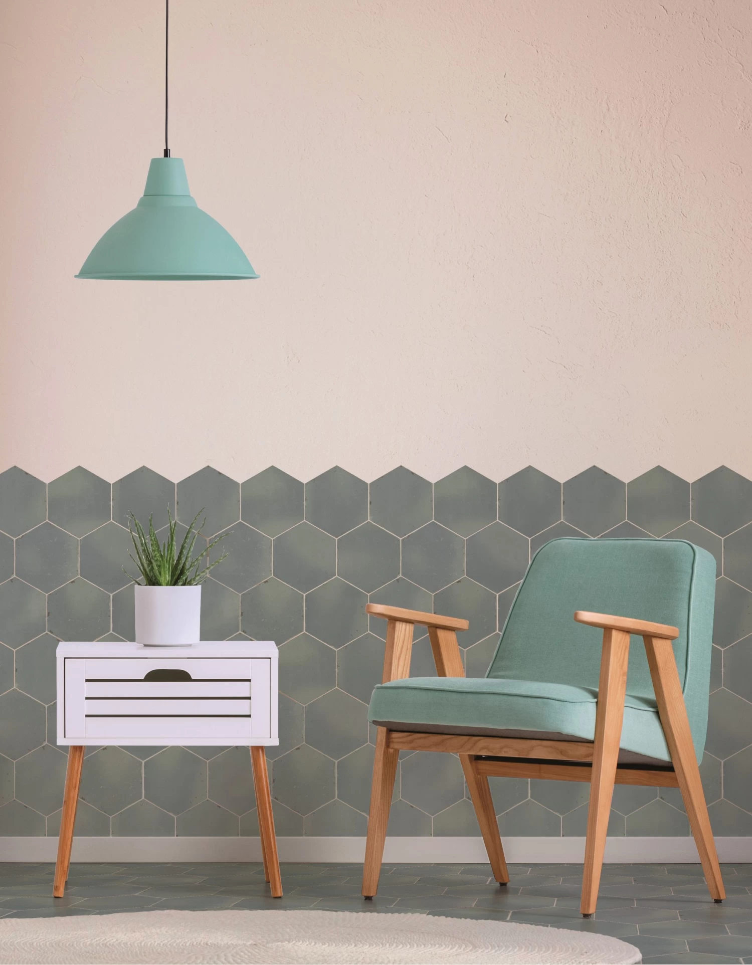 Deze trendy hexagon tegels maken elke ruimte hip! De Odensa is een mint groene zeshoekige tegel. Ideal voor de badkamer, keuken of het toilet. De tegel heeft een effen mint groene kleur met een getrommelde afwerking en een licht relief, golvend oppervlakte. De tegels zijn geschikt voor elke ruimte, nat en droog, binnen en buiten en is geschikt voor zowel wand als vloer.