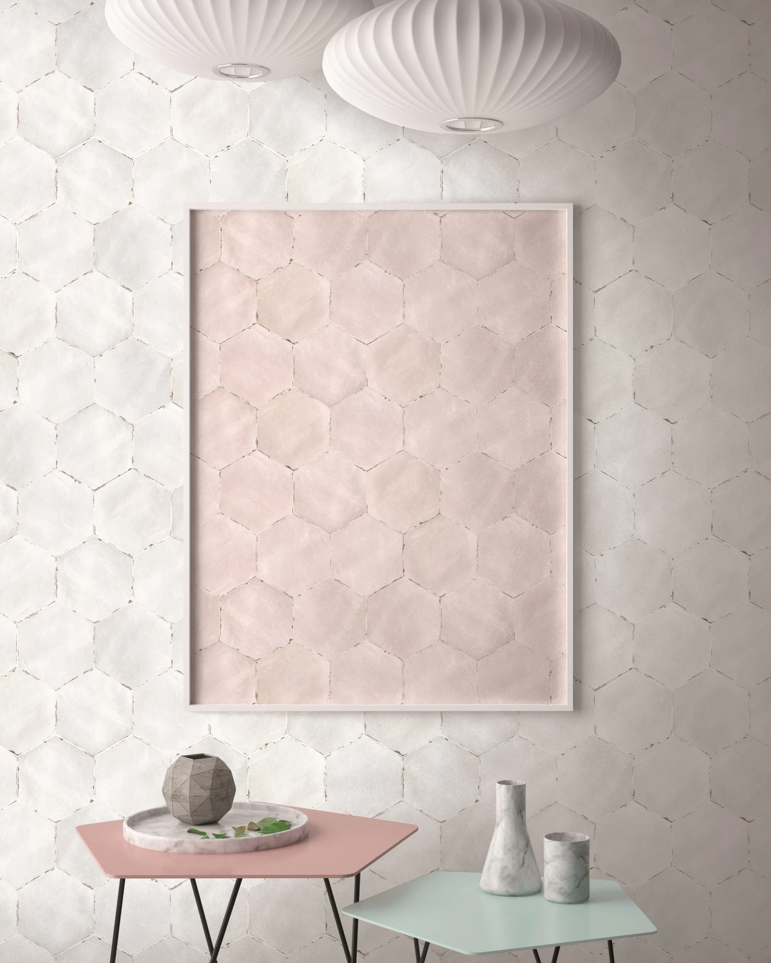 Deze trendy hexagon tegels maken elke ruimte hip! De Odensa is een witte zeshoekige tegel. Ideal voor de badkamer, keuken of het toilet. De tegel heeft een effen witte kleur met een getrommelde afwerking en een licht relief, golvend oppervlakte. De tegels zijn geschikt voor elke ruimte, nat en droog, binnen en buiten en is geschikt voor zowel wand als vloer.