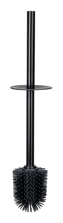 De zwarte toiletborstelset Casoli heeft een eenvoudig design met een moderne uitstraling. De houder is stijlvol mat afgewerkt. De container van de Casoli toiletborstelset is gemaakt van hoogwaardig keramiek en is hiermee tijdloos en duurzaam. De toiletbortselhouder wordt afgesloten door een flexibel zwart kunststof deksel dat in het handvat van de toiletborstel is geïntegreerd. De gesloten toiletborstelset bevat een toiletborstel met siliconen borstelkop. Deze zorgt voor een grondige, hygiënische reiniging van het toilet en reinigt zichzelf tijdens het doorspoelen dankzij de anti-kleefwerking van het materiaal. De hoogwaardige zwarte borstelkop met een diameter van 7,5 cm is gemaakt van siliconen en kan worden vervangen.